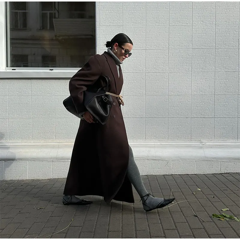 Experience the epitome of chic sophistication with our oversized women’s woolen overcoat, crafted for both style and warmth this fall. This refined double-breasted piece features a classic lapel collar and long sleeves, making it a versatile essential that elevates any look with ease. Ideal for layering, this luxurious overcoat blends comfort and elegance, making it a staple for every autumn occasion.